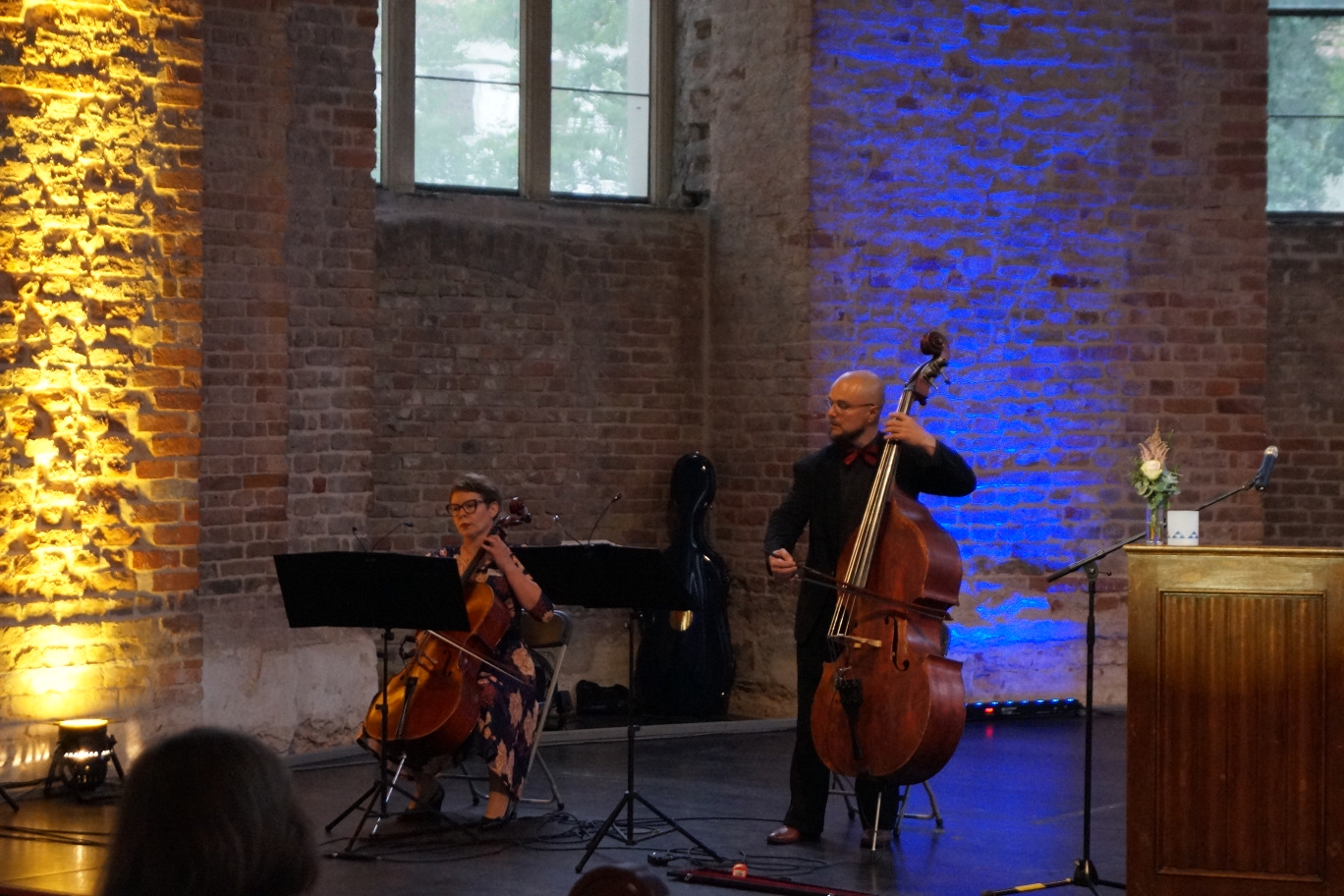 Nach den Vorträgen wurde der kulturelle Teil vom Duo Marta & Bartek als Oldwine mit ihrem phantasievollen Gruß Viola da Braccio eingeläutet. Gäste wie Gastgeber lauschten der klassischen und modernen Musik mit Cello, Kontrabaß und Gitarre und so manch eine oder einer versank in Träumereien. Vielen Dank!