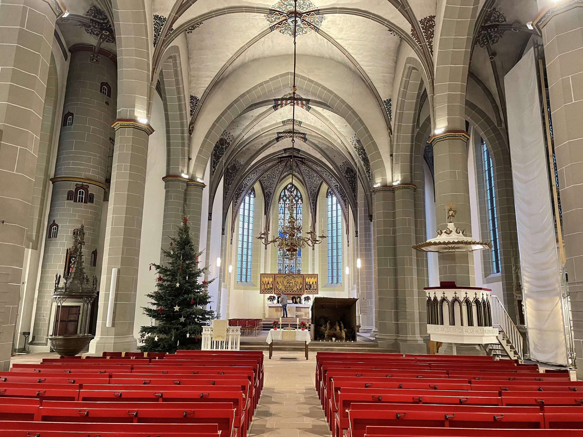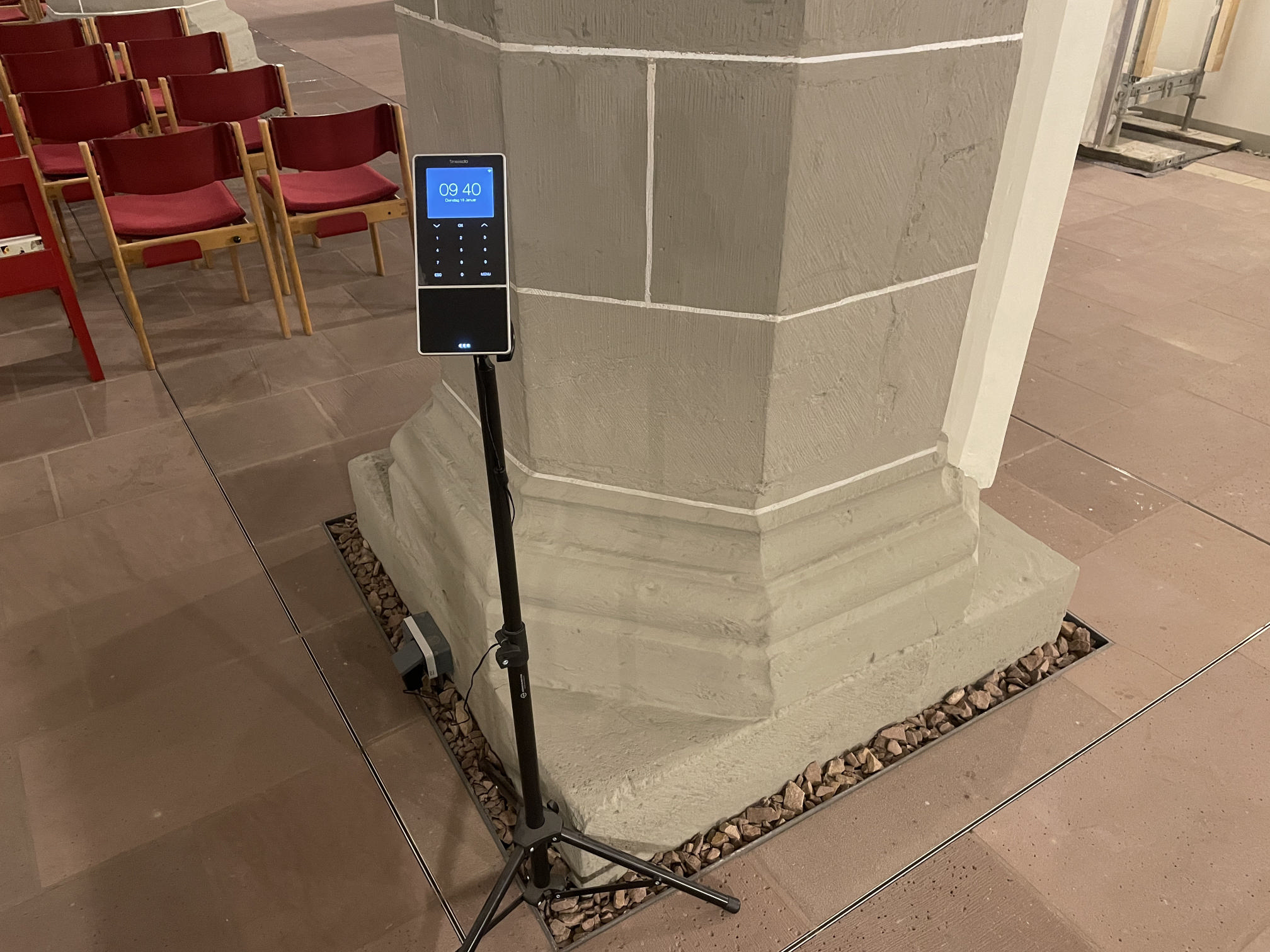 - Montage neuer Leuchten an den Säulen im Kirchenschiff